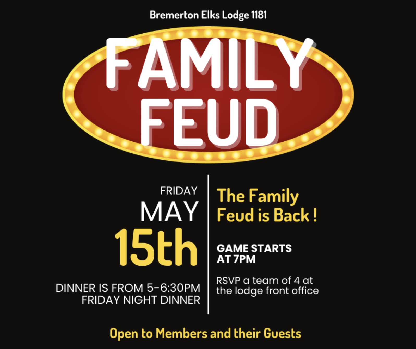 Once again your Bremerton Elks will field teams of 4 players for this friendly competition.