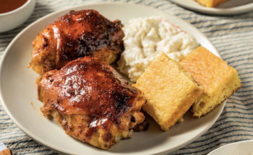 Friday Dinner - BBQ chicken, potato salad, cornbread, and apple [...] |